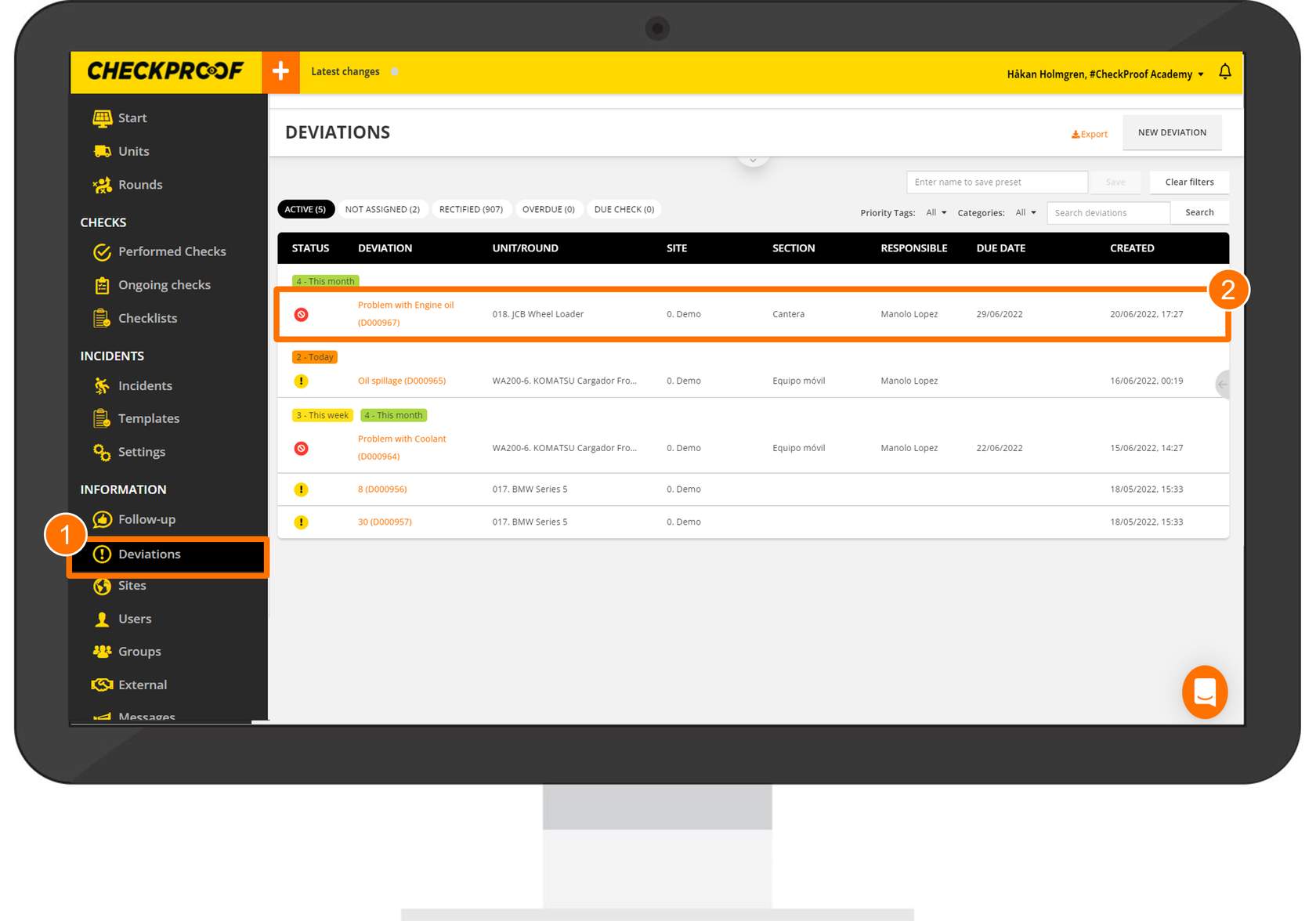 Click the “Deviations” tab to see the list of all deviations created for this unit.