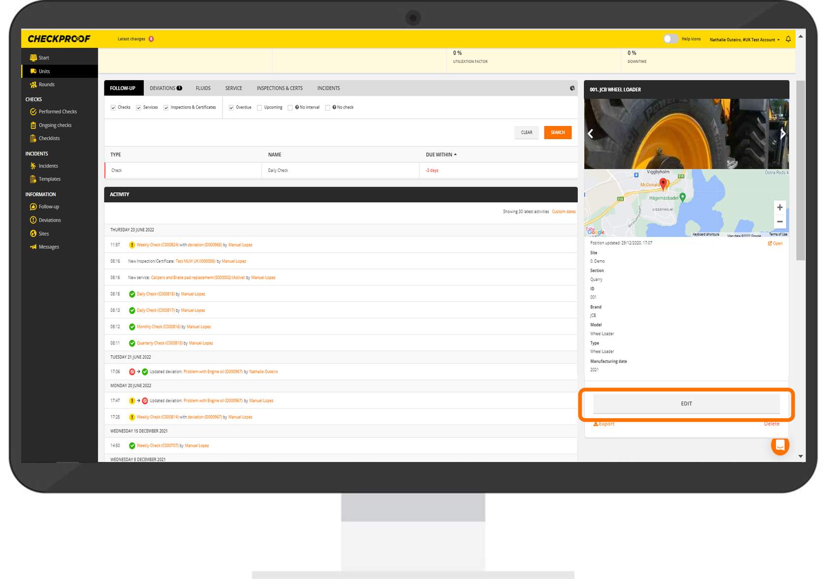 By activating CheckProof Connect you will receive real-time data for odometers and GPS positions of your equipment.