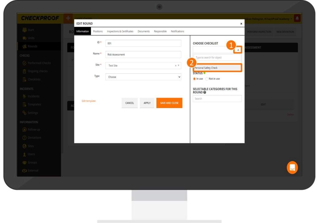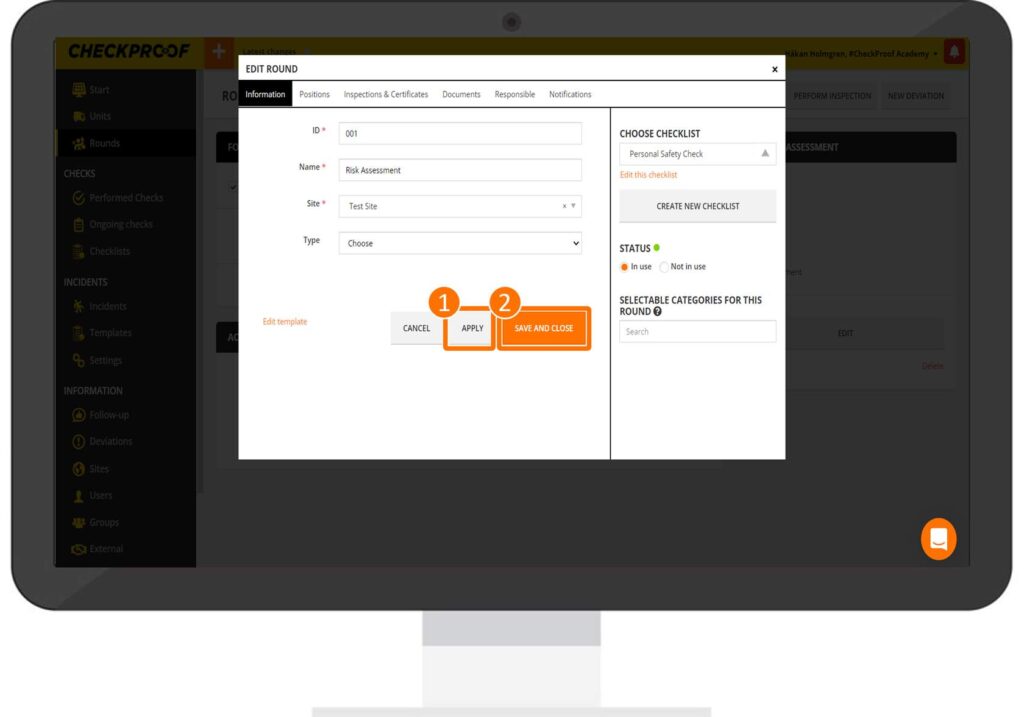Now that you have selected a checklist, click on “Apply” and then on “Save and Close”.