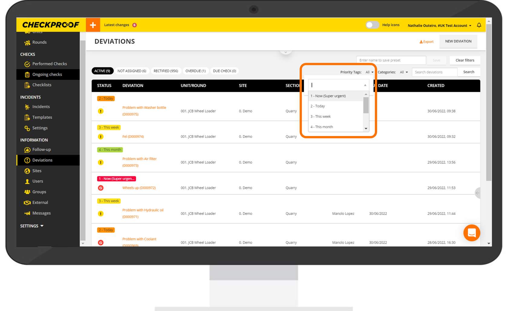 Click on the  “Priority tag” filter to organize the deviations by priority tag.