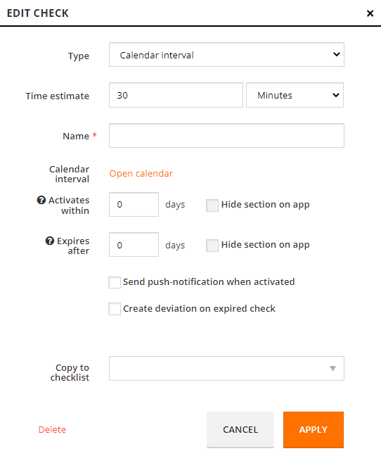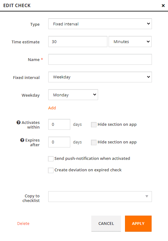 When you create or edit checks in the checklists, you can choose how often these checks should be performed.