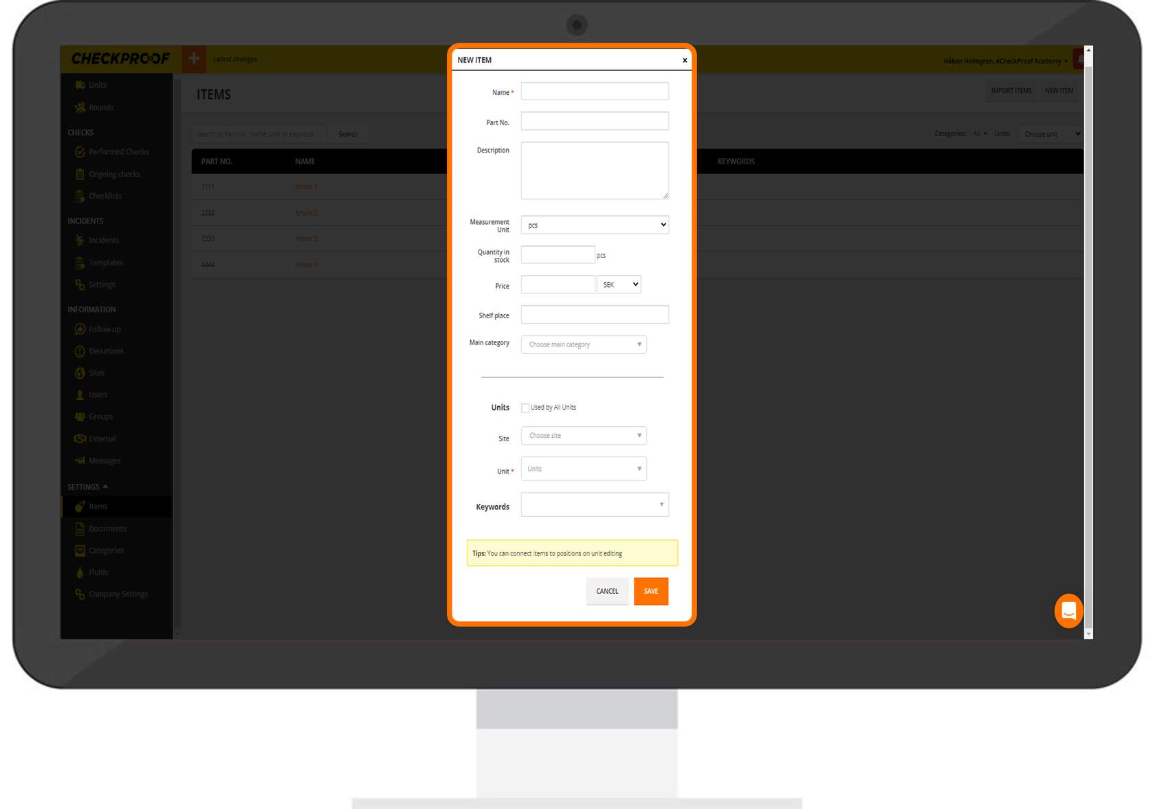 Here you need to manually enter the item data. The fields with an asterisk (“Name” and “Unit”) are mandatory.