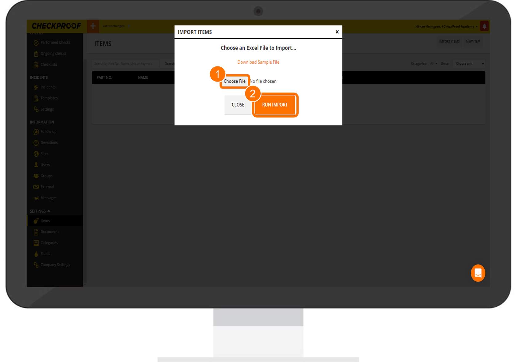 Navigate back to CheckProof once you have saved your Excel spreadsheet. Click the “Choose File” button, select the file from your device, and then click the “Run Import” button.