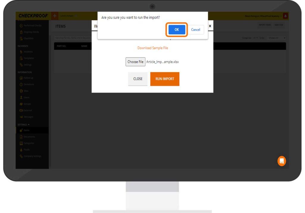 You will now be prompted to confirm that you want to run the import. Click the “OK” button to run it.