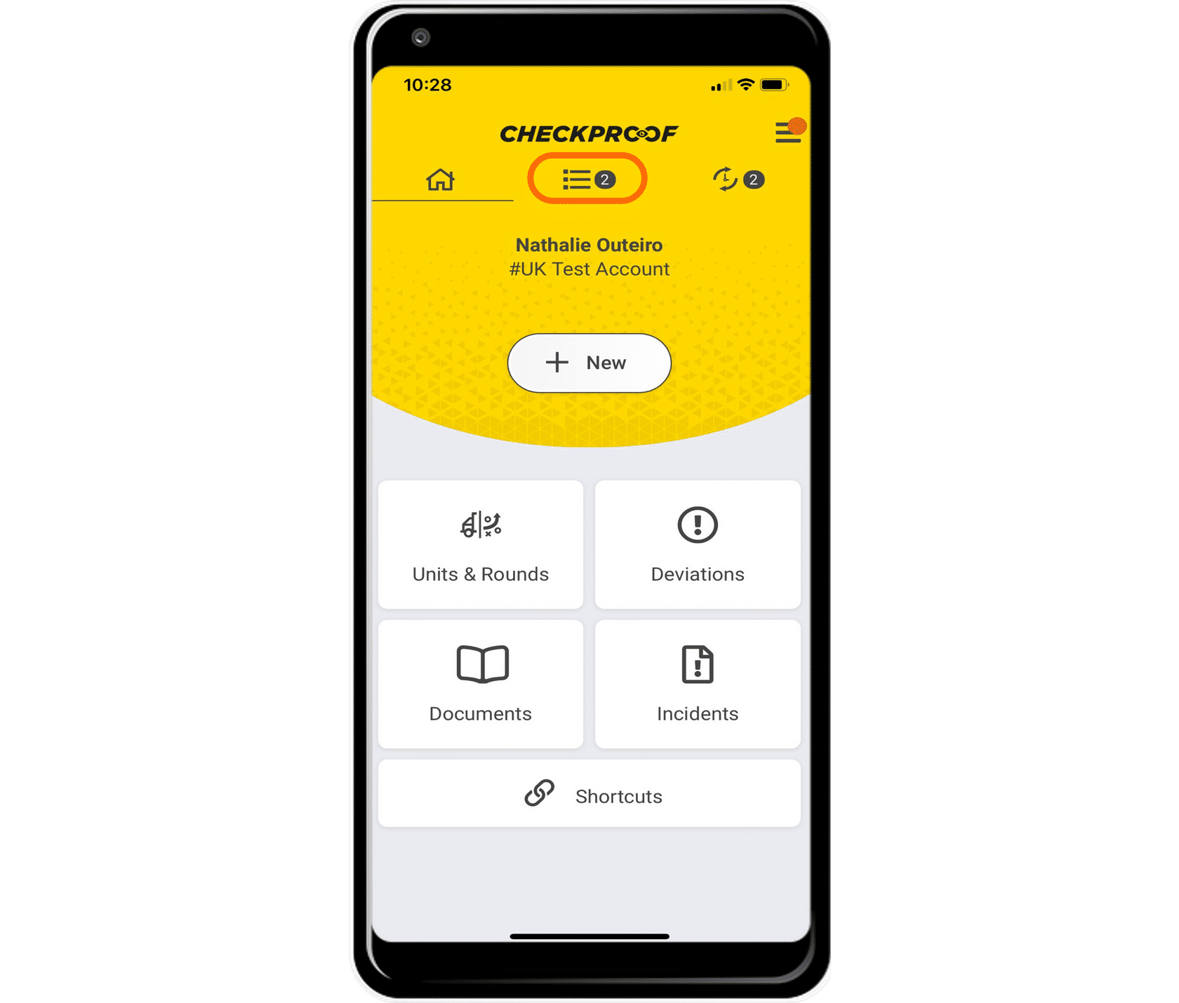 Any checks, deviations, and/or services that you are responsible for will appear in lists under my tasks menu, which can be found by clicking the list icon from the app homepage.