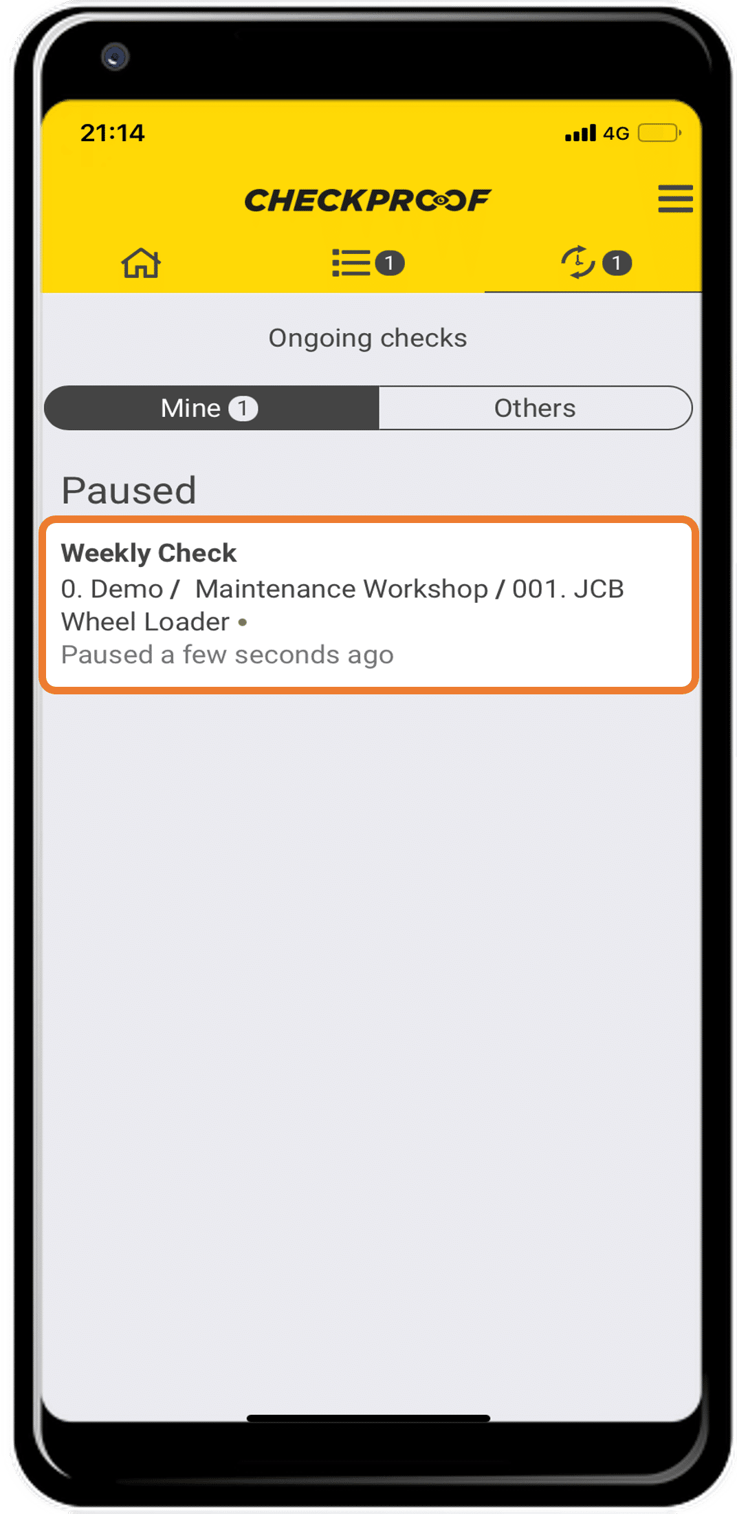 The check will be saved in the ongoing section of the main menu. Click on the ongoing icon to open it.
