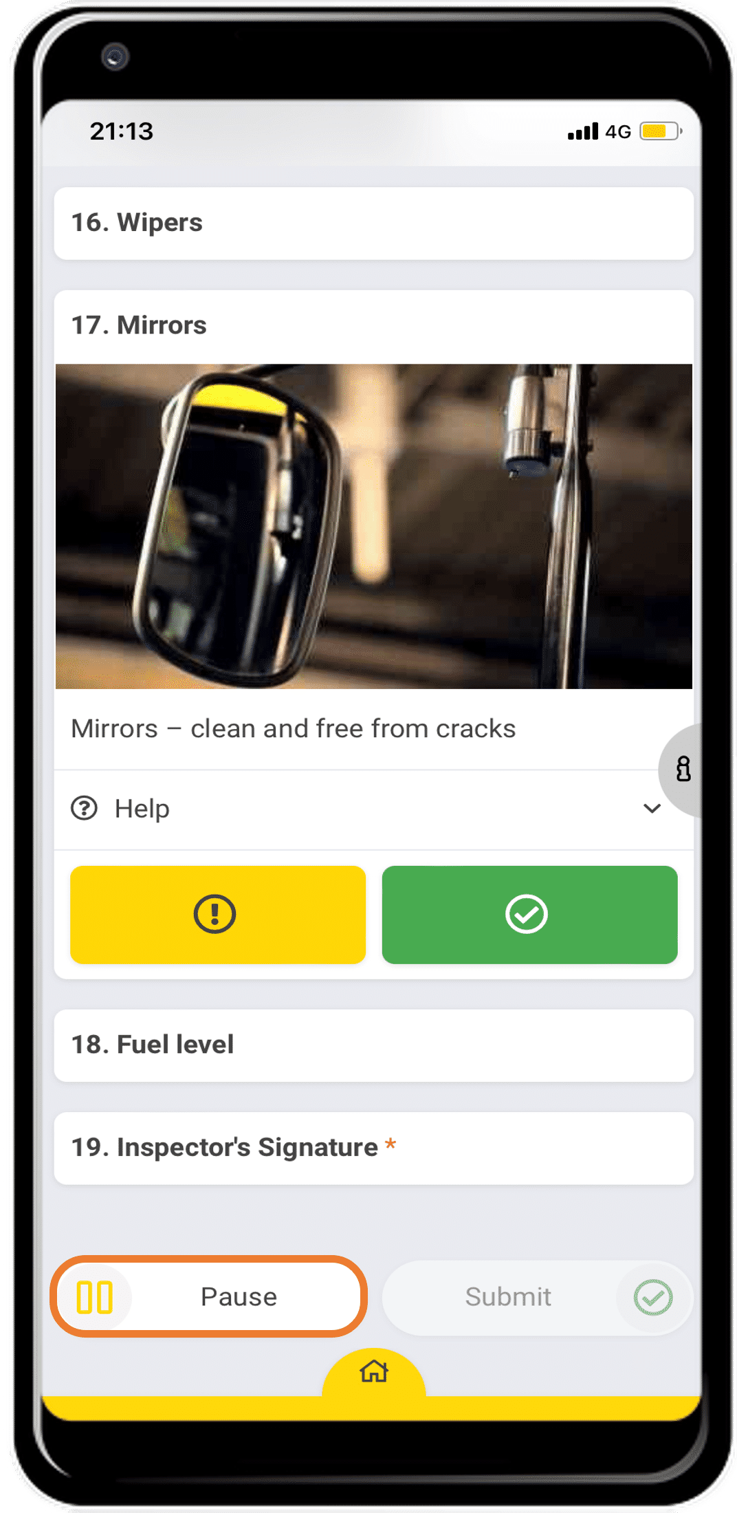 To pause the check you are performing from the “Standard” view, scroll down and click “Pause”.