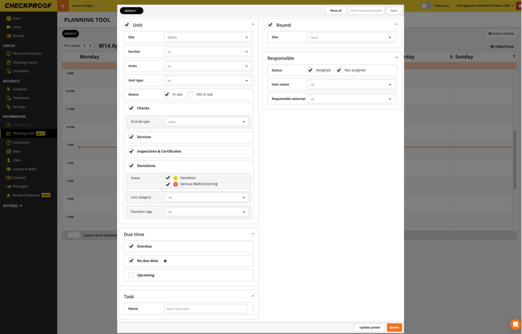 To start using the planning tool feature, it needs to be enabled from CheckProofs side