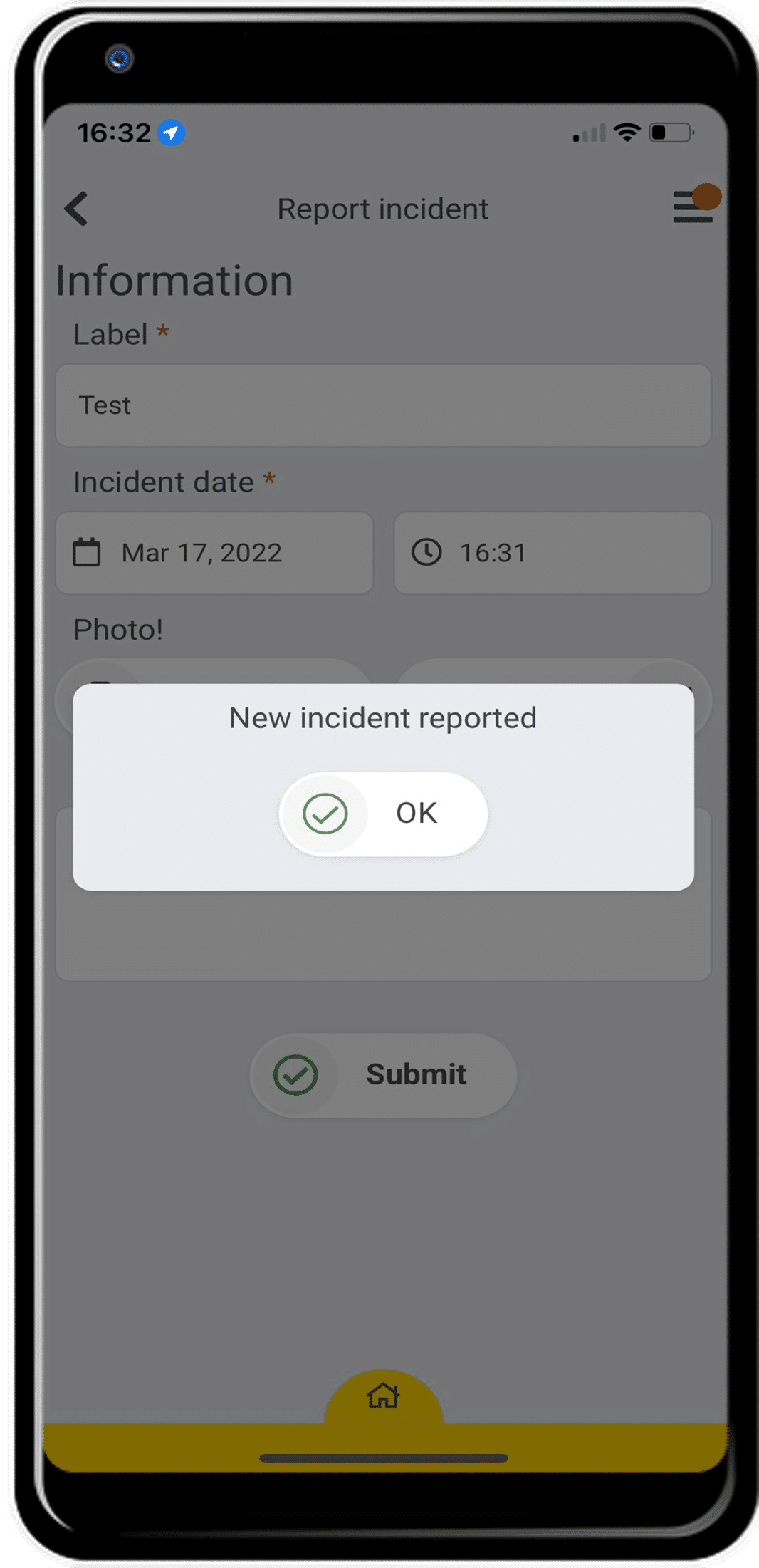 If something goes wrong on site you may need to report the incident. You can do this in the CheckProof app.