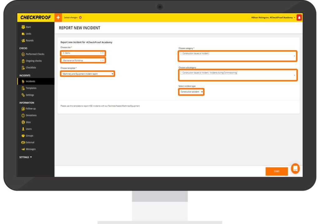 You now need to fill out some information regarding the incident. The fields described below are marked with an asterisk, indicating they are mandatory.