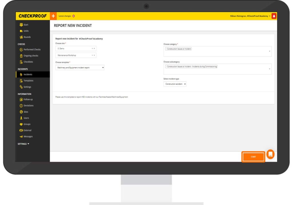 • *Choose Site: Here you should select a site from the drop-down list where the incident occurred. Once you have selected a site, you will have the possibility to select a specific section if there are any related to this site.