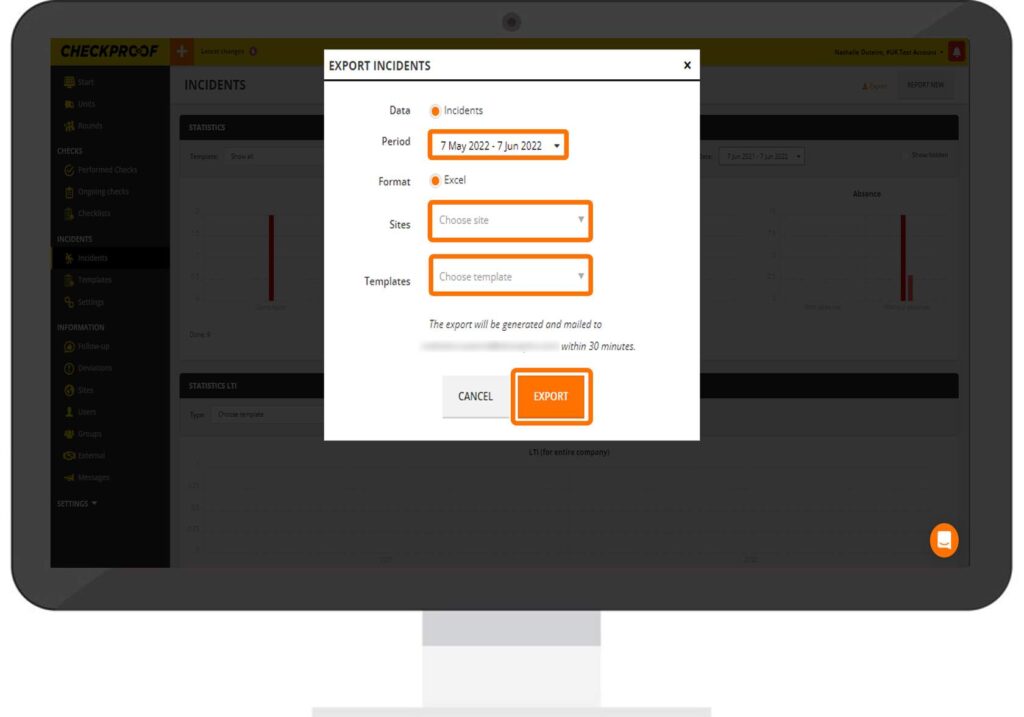 • Sites: You can filter the incidents that will be exported by selecting the sites you want to include.