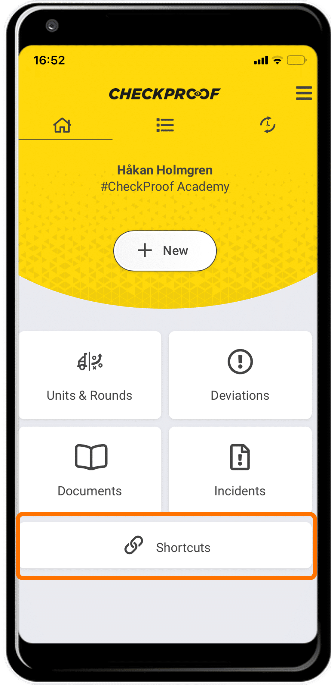 The “Shortcuts” button will appear on the home screen of the CheckProof app.