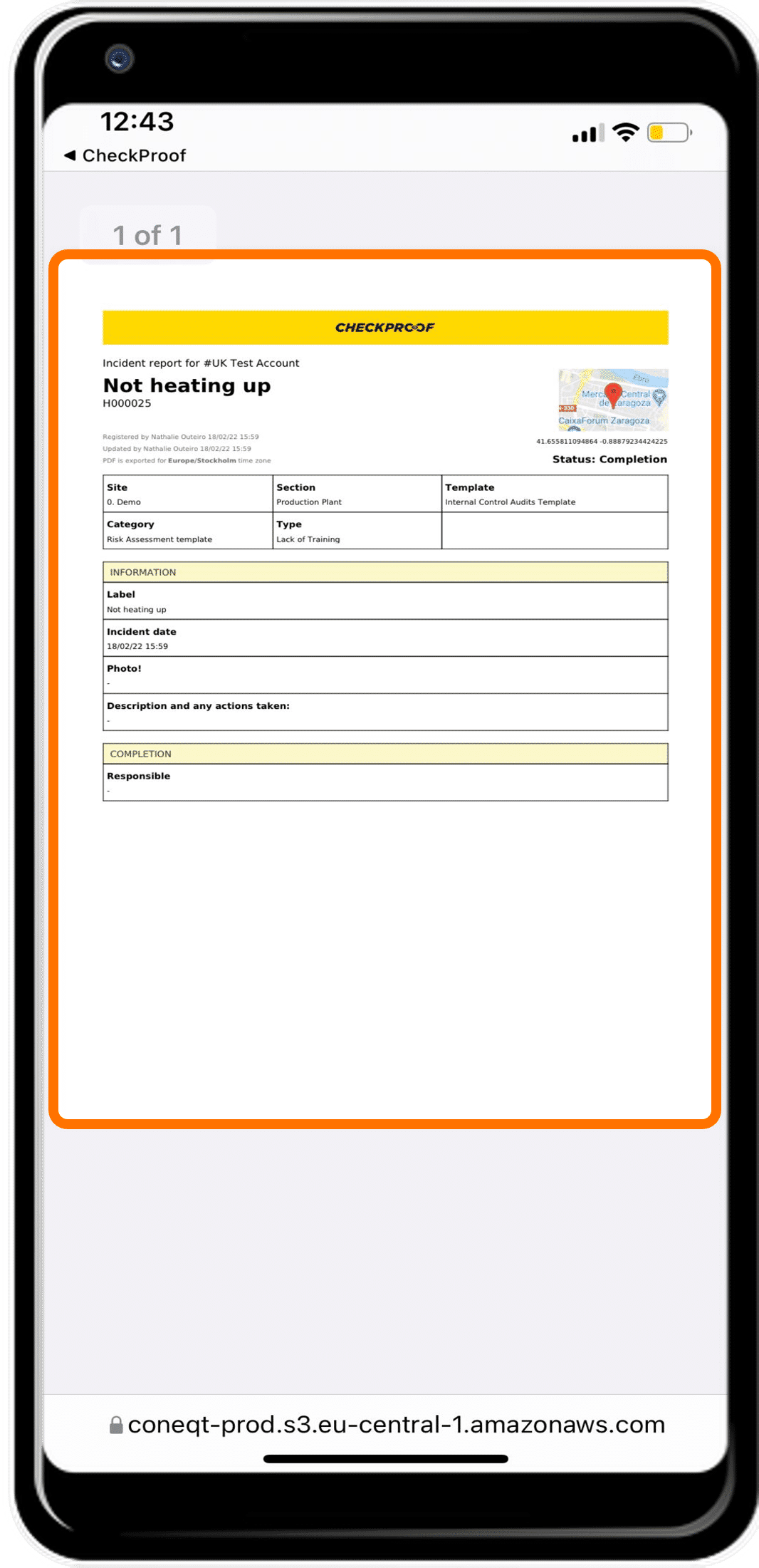 Great! You have successfully downloaded an incident report. This will be saved to your device as a PDF document.